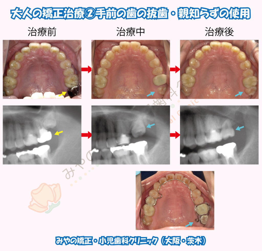 矯正治療にて本来であれば使えなかった親知らずを使用し、インプラントや入れ歯を回避することができました。