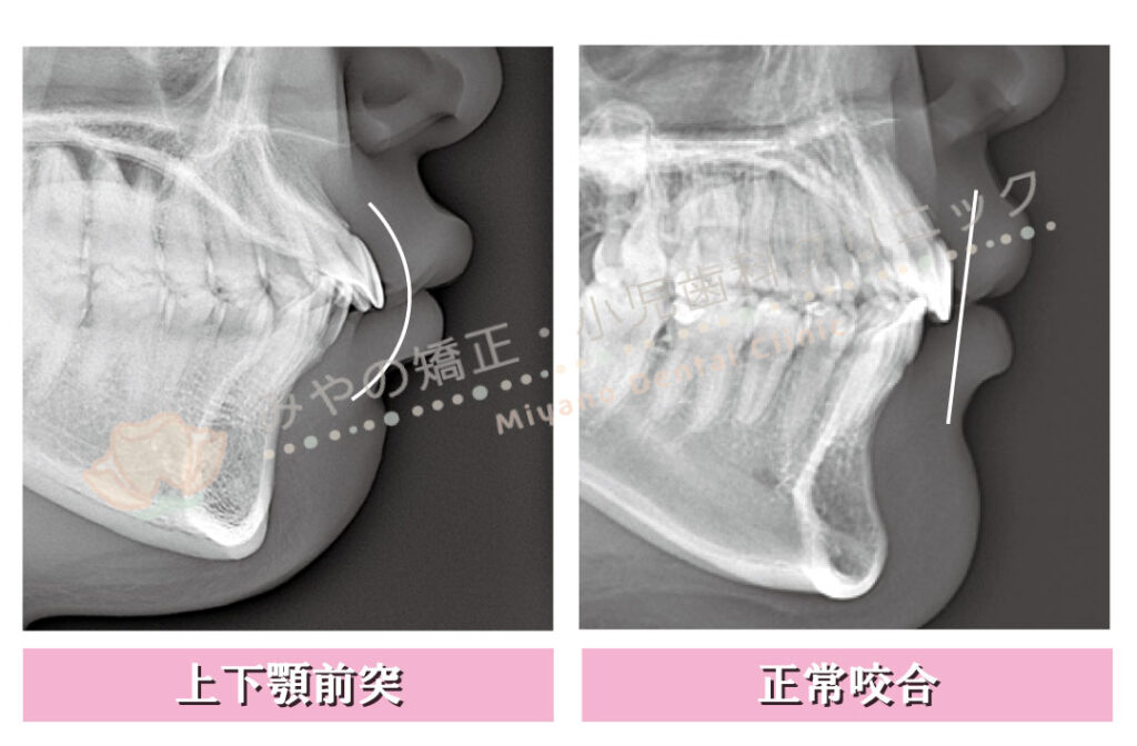 口写真だけでは判断できないため、顔写真やセファロという横顔のレントゲン写真で確認する必要があります。