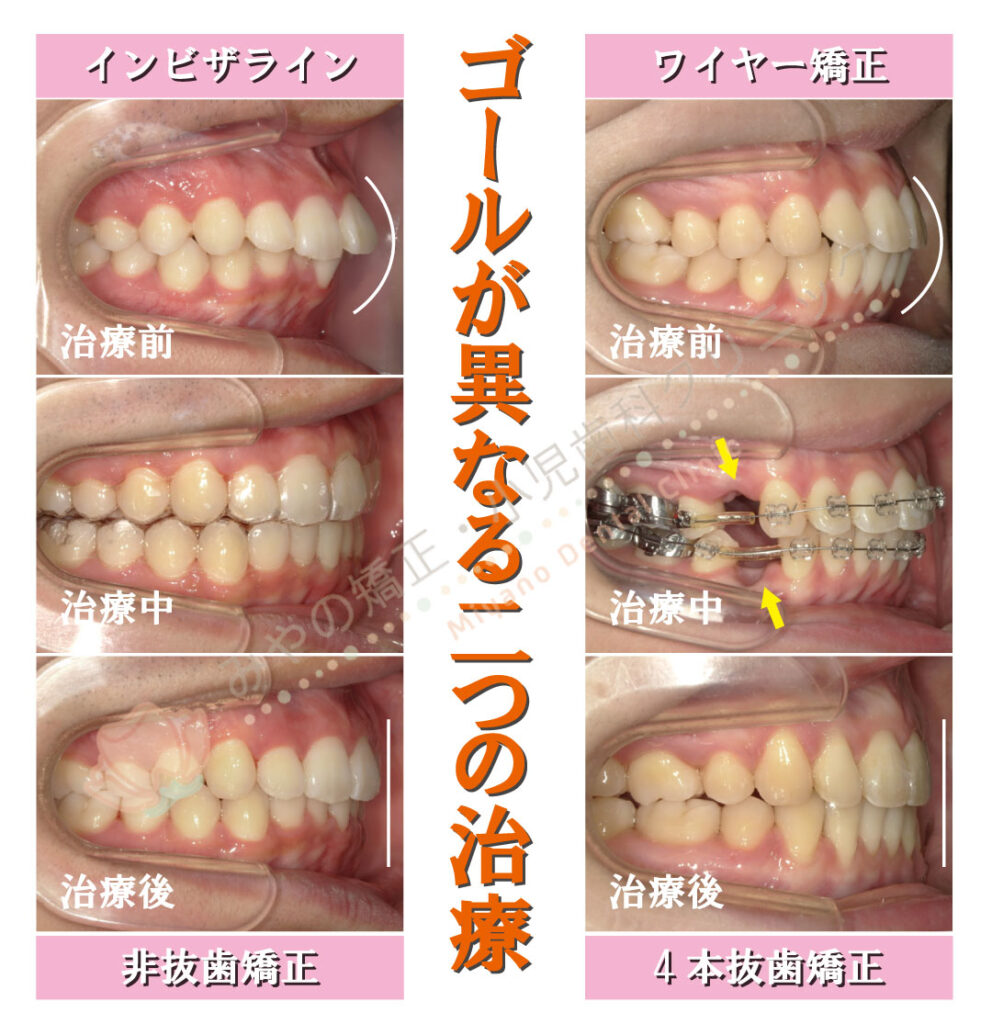 どちらの方法で治療を行っても、歯だけをみるとどちらの患者様もしっかり中に入っています。