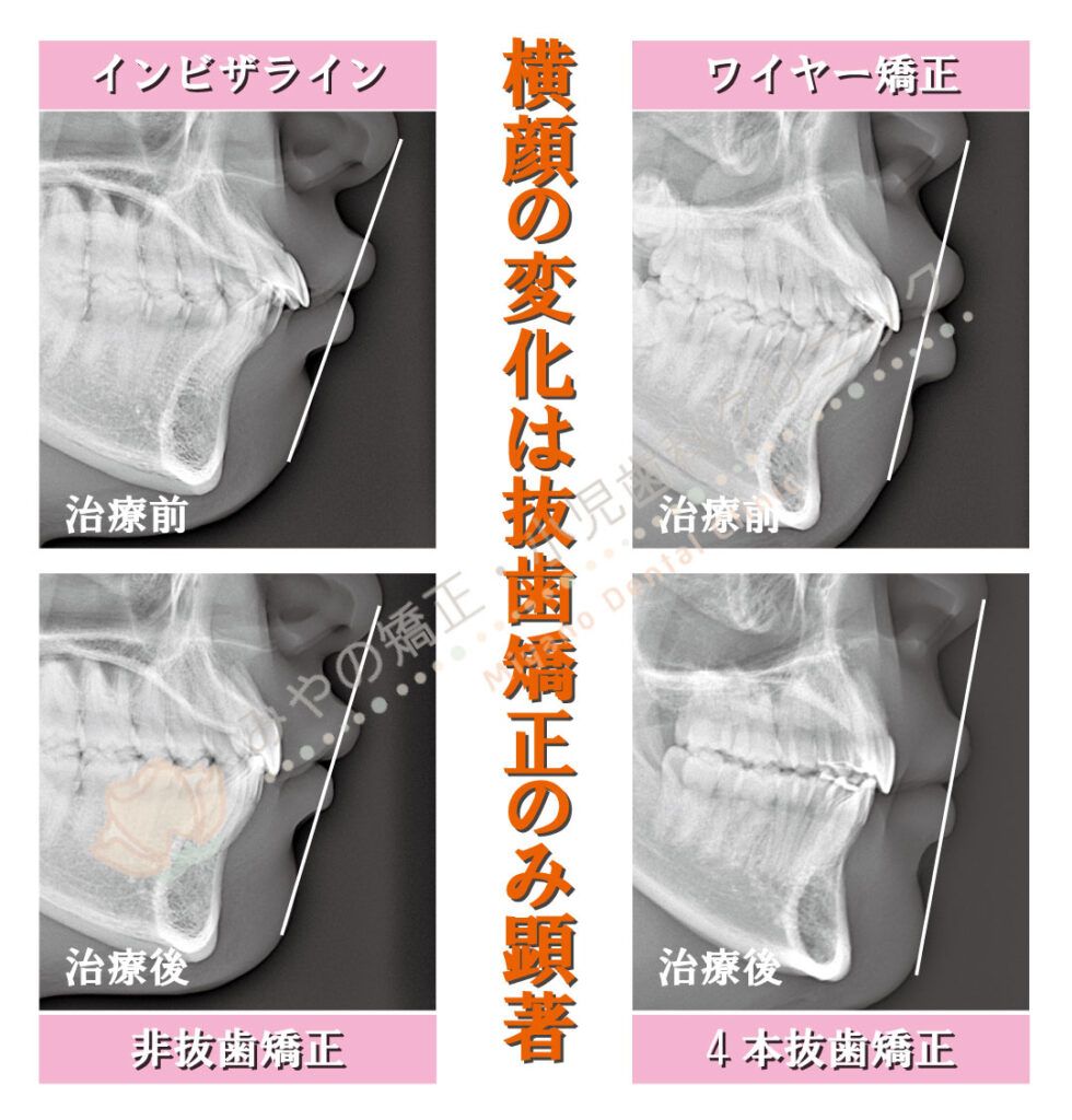 矯正の目的は歯だけでなく、横顔(Eライン)の変化も重要となります。